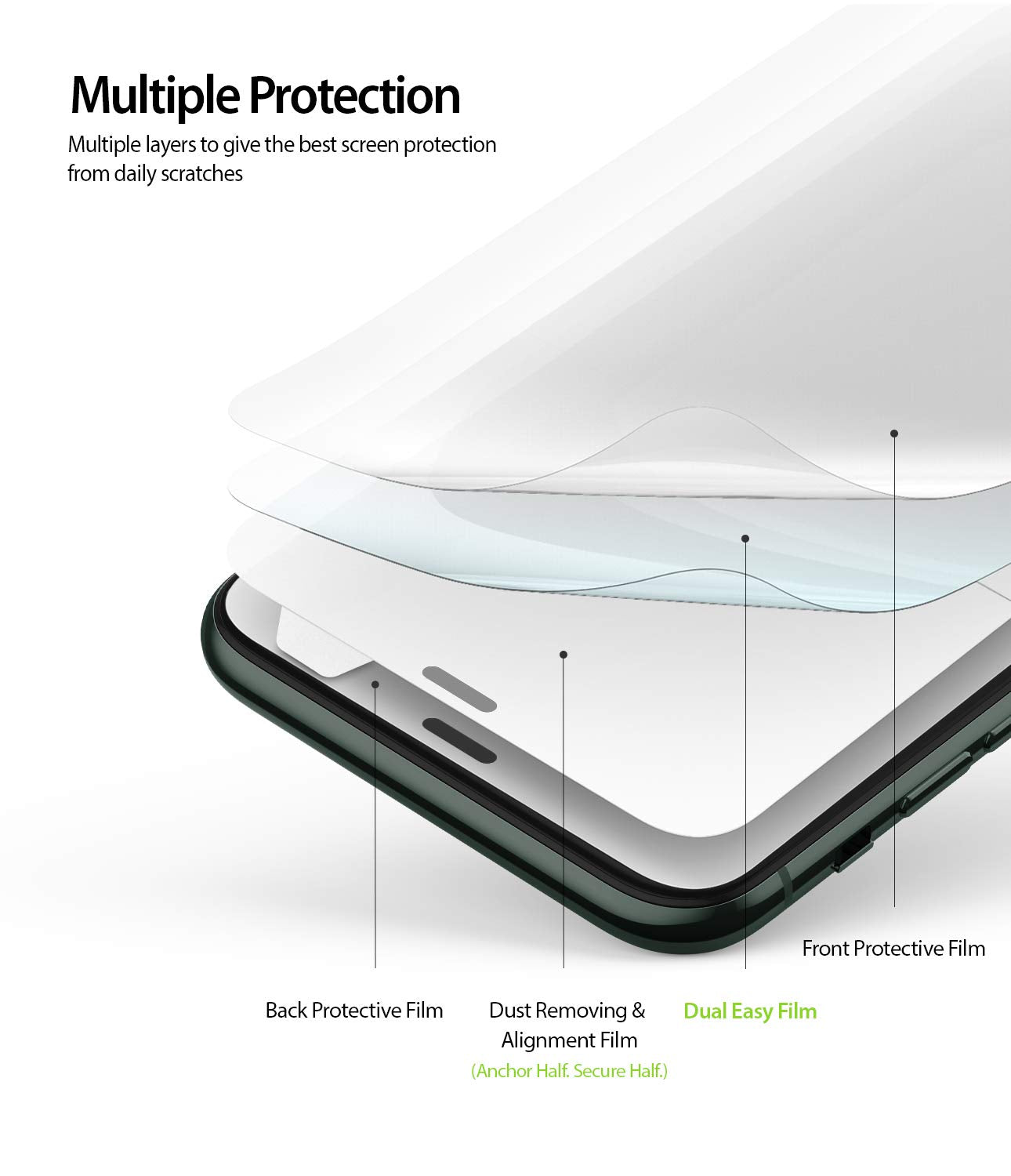 Ringke Dual Easy Film Screen Protector is fully adhesive from top-to-bottom for a seamless bond. The full adhesion allows the screen protector to tightly adhere onto the phone for genuine touch responsiveness.