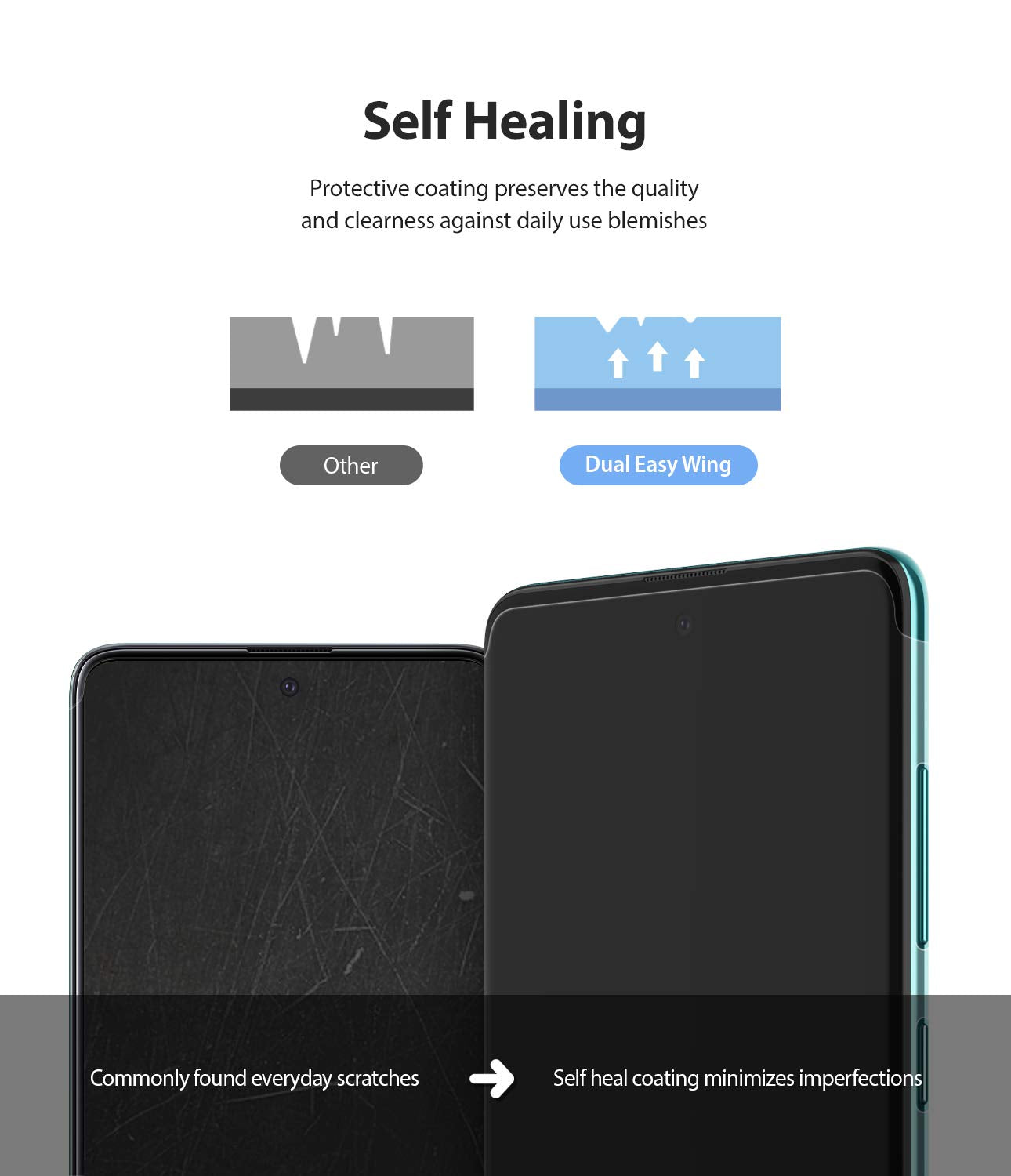 Innovative side wing design extends beyond the AMOLED display for complete coverage of the screen and full edge-to-edge protection to use with your favorite cases without any lifting. The wrap-around films are precisely cut to fit around the buttons and ports to allow full usage of your phone without distractions or interference. Ringke Dual Easy Wing Film is fully adhesive from top-to-bottom for a seamless bond.