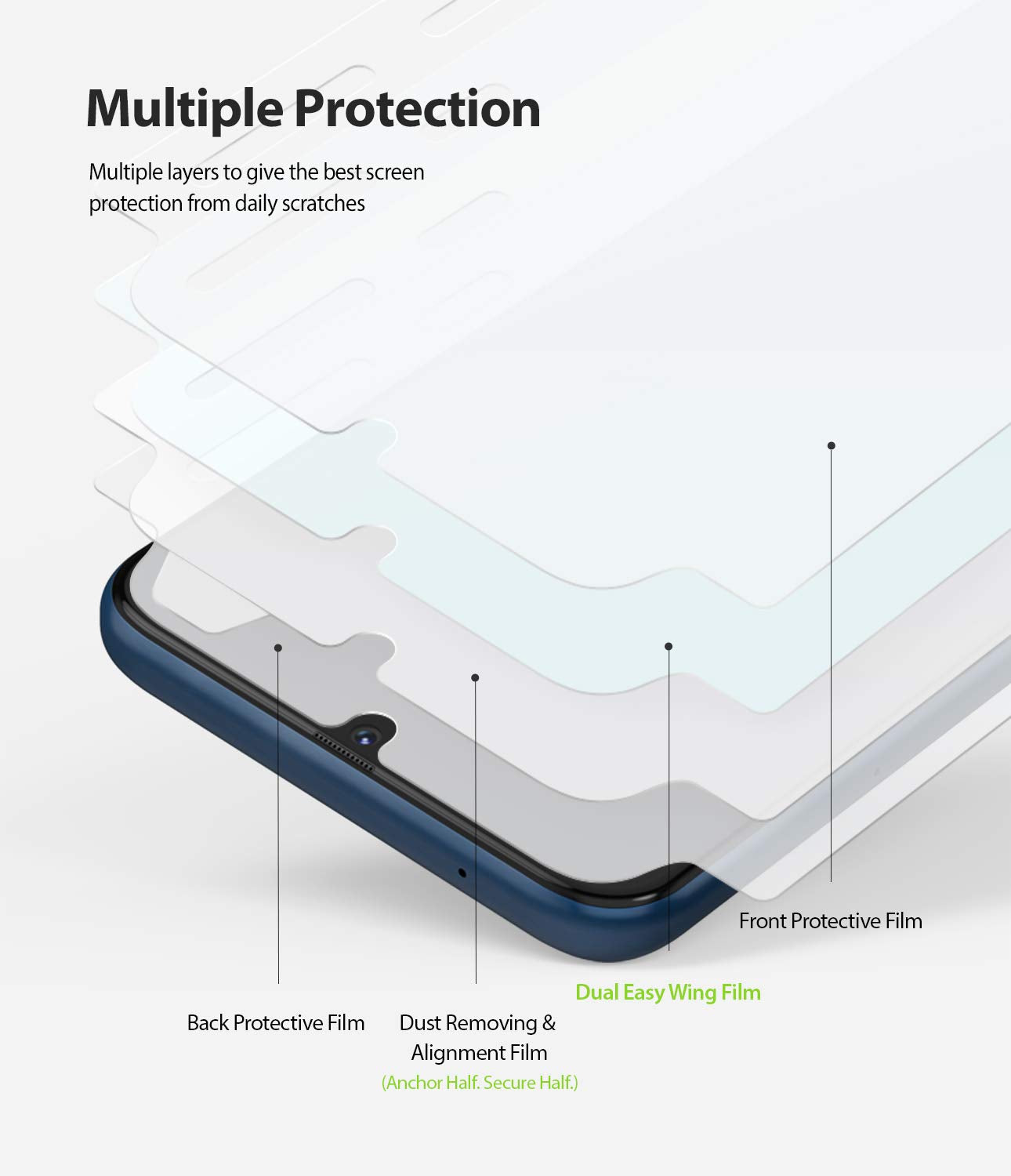 Invisible FitWhy ruin the aesthetics of your device by adding a heavy glass screen protector? Make your protection invisible and lightweight. The Dual Easy Wing Film Full Coverage Screen Protector is an imperceptible layer of added security to keep your phone screen sparkling and scratch-free.