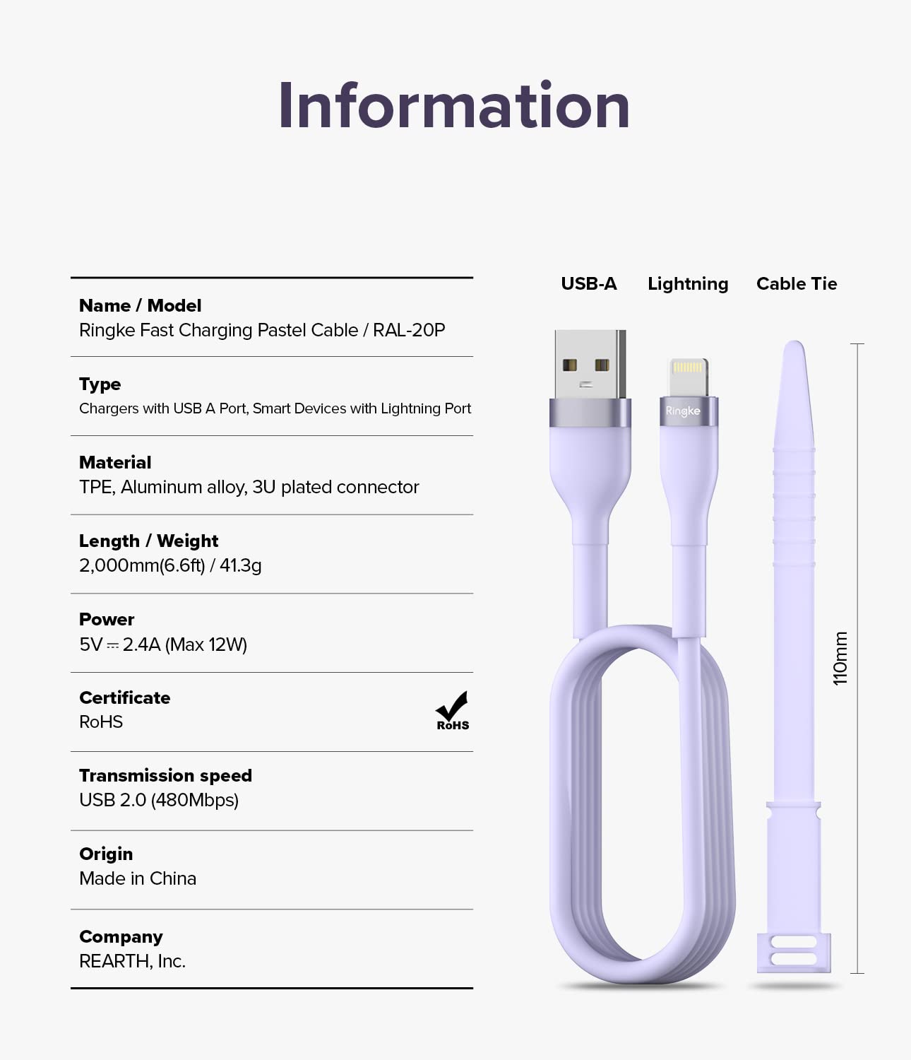 Ringke Fast Charging Pastel Cable USB Type-A to Lightning - (2m)