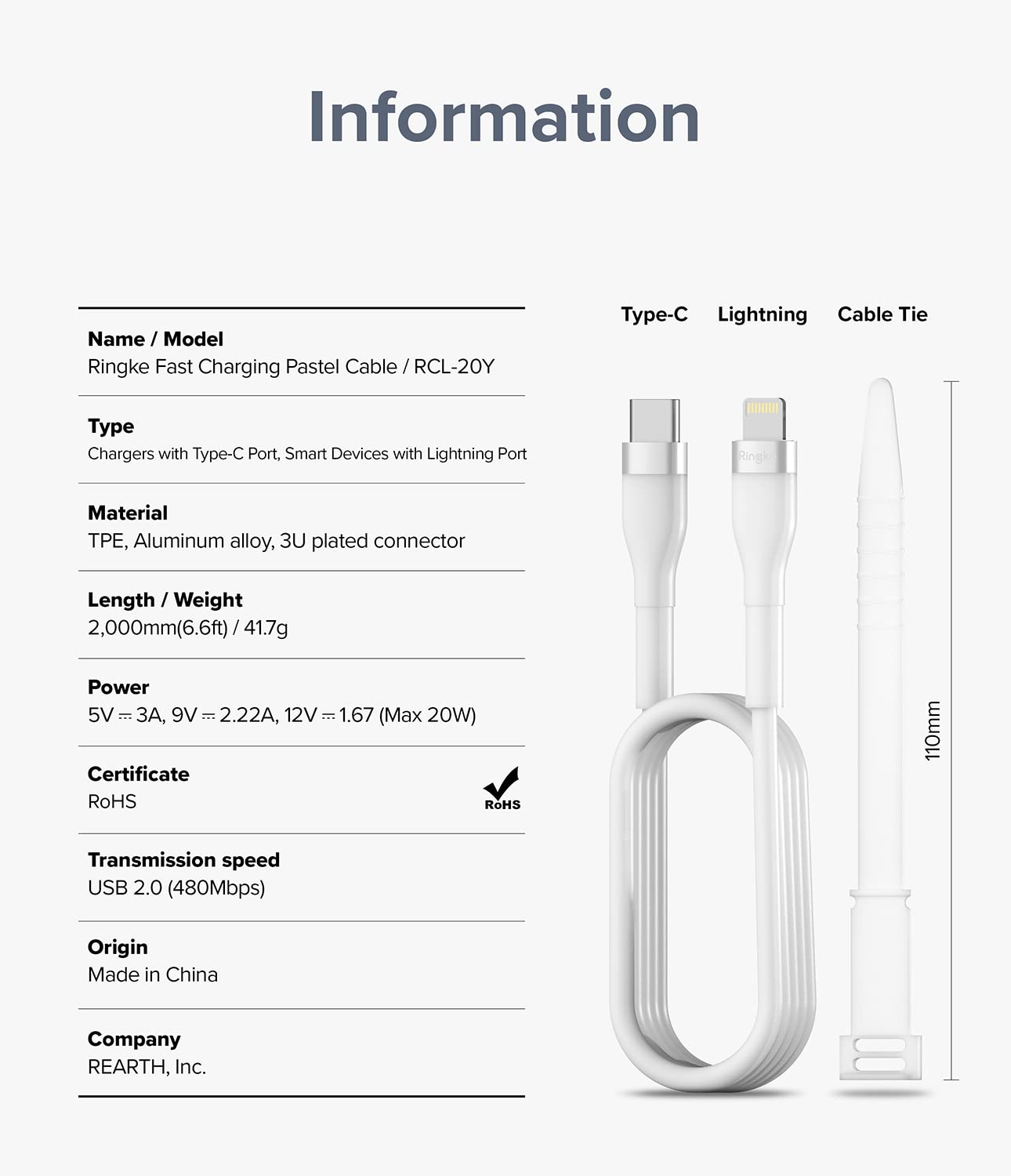 Ringke Fast Charging Pastel Cable USB Type-C to Lightning - White (2m)