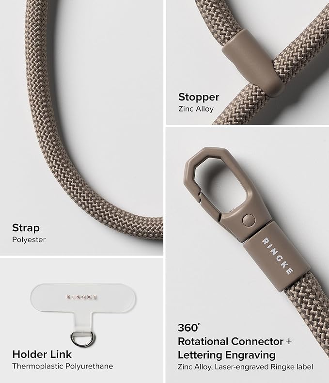 Ringke Holder Link Flow Hand Strap (P Type) with TPU Tether Tab | Adjustable Tangle-Free Wrist Loop for All Phone Cases – Mocha Mousse