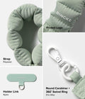 Ringke Holder Link Puffer Finger Strap – Quilted Puffy Wrist Lanyard with Patch & 360° Rotating Connector – Matcha Green
