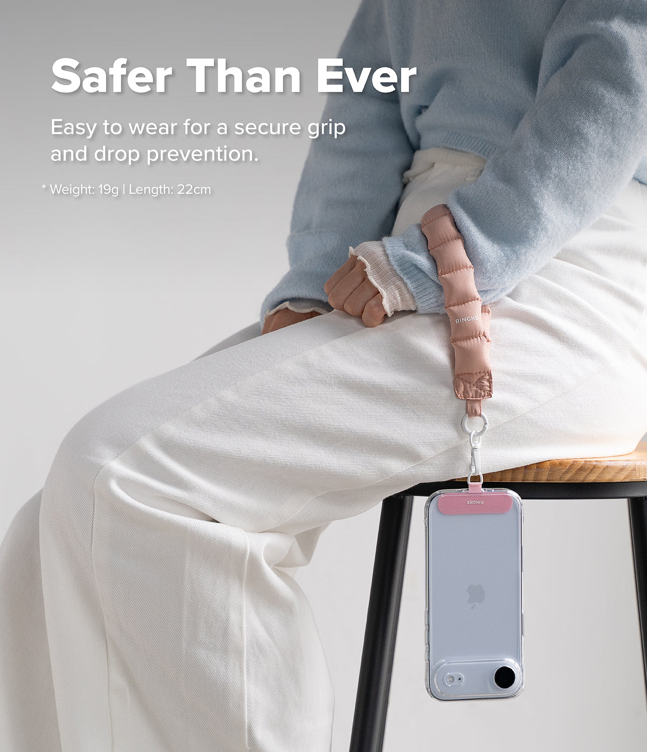 Whether you’re carrying your phone, camera, keys or whatever else, the Ringke Puffer Hand Strap ensures a confident hold and worry-free portability anywhere you go.