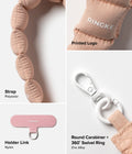 Ringke Holder Link Puffer Hand Strap – Quilted Puffy Wrist Lanyard with Patch & 360° Rotating Connector – Floral Pink