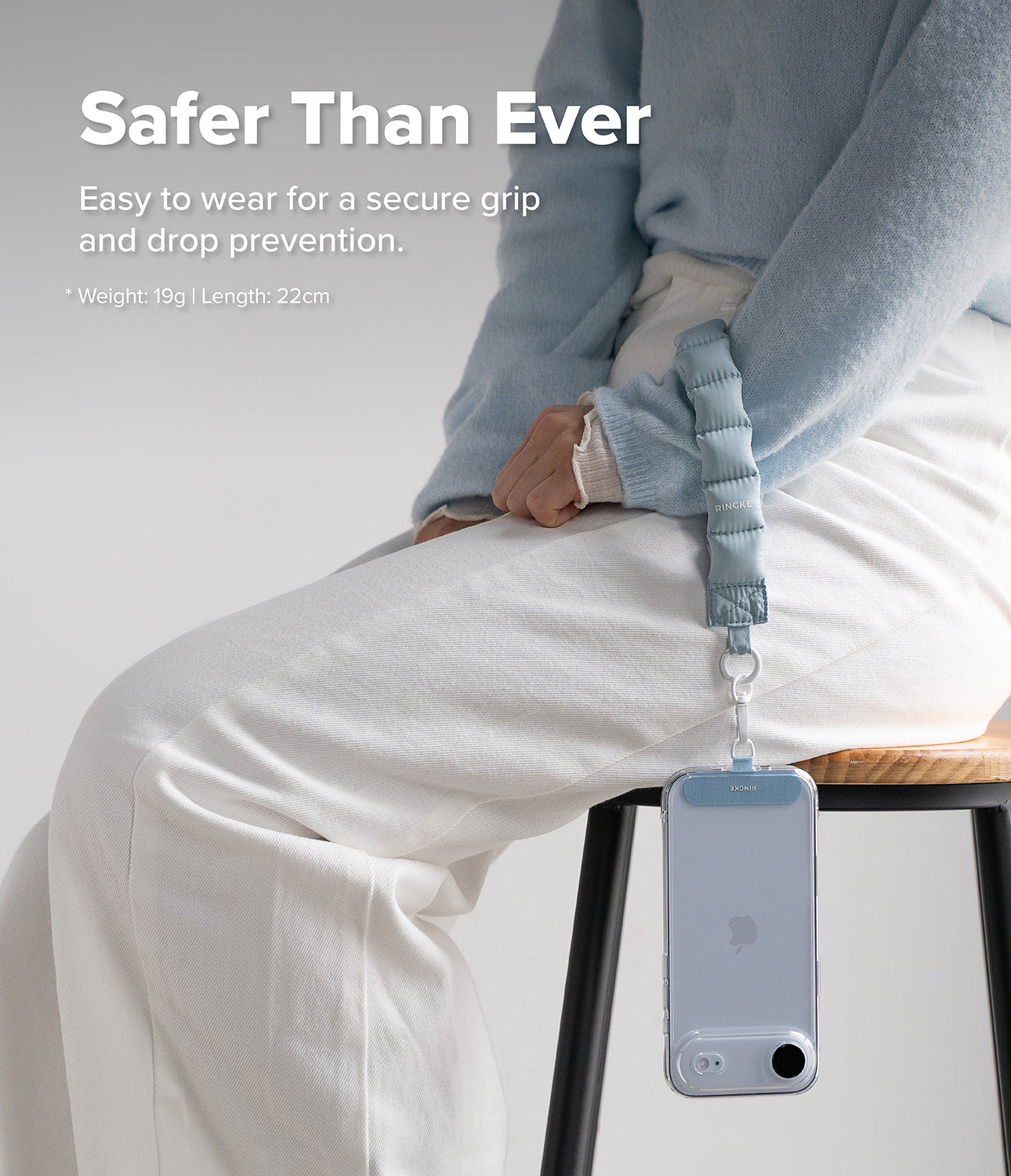 Whether you’re carrying your phone, camera, keys or whatever else, the Ringke Puffer Hand Strap ensures a confident hold and worry-free portability anywhere you go.