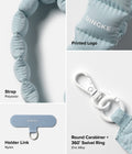 Ringke Holder Link Puffer Hand Strap – Quilted Puffy Wrist Lanyard with Patch & 360° Rotating Connector – Light Blue