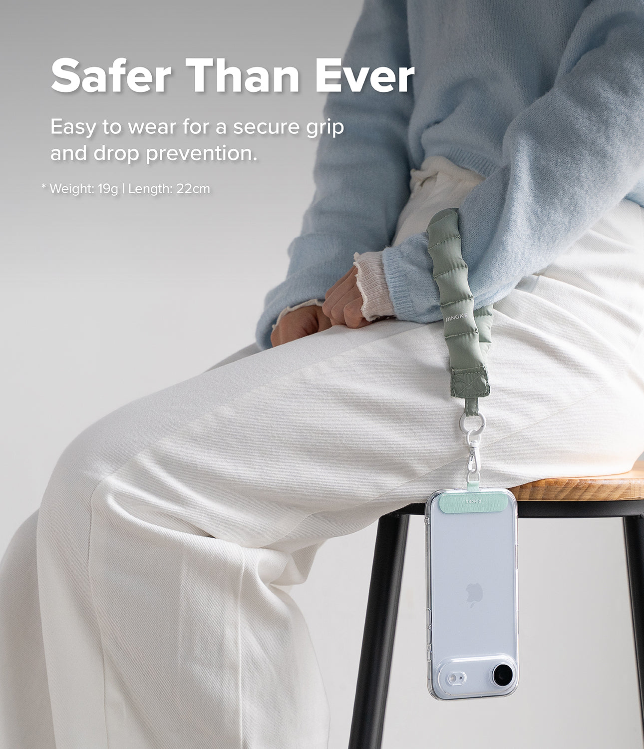 Whether you’re carrying your phone, camera, keys or whatever else, the Ringke Puffer Hand Strap ensures a confident hold and worry-free portability anywhere you go.