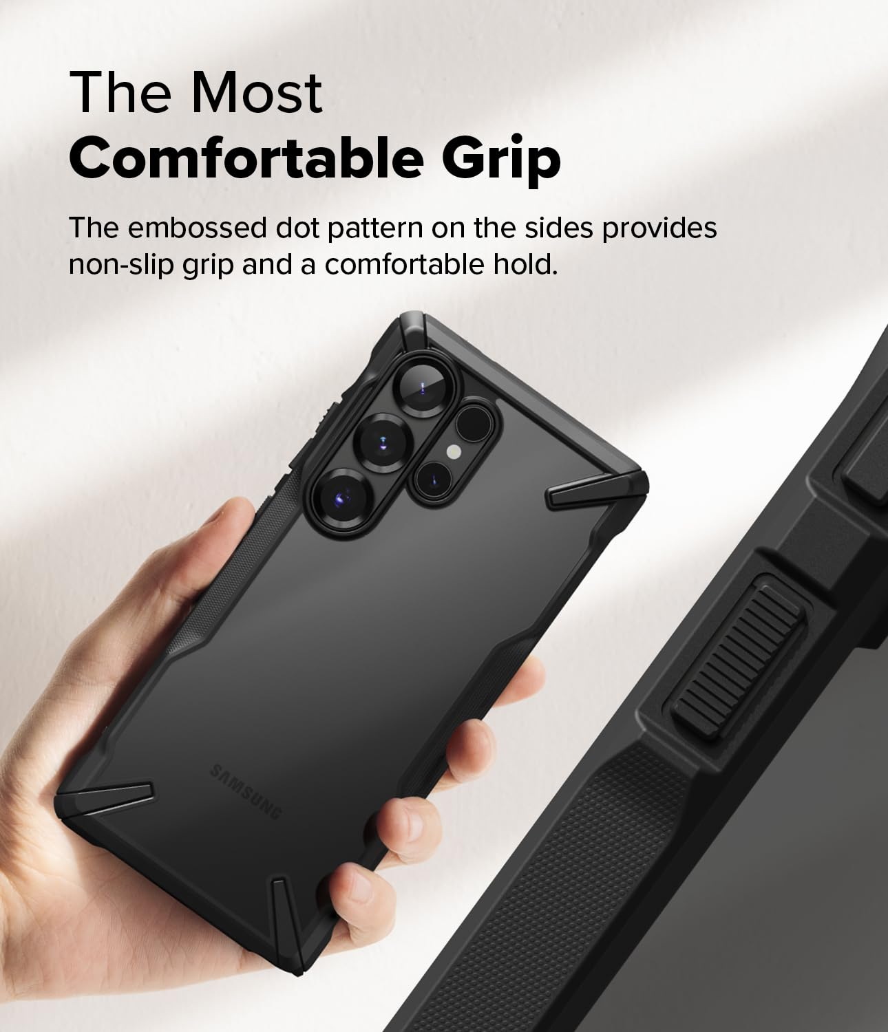 - Grip Control : The rugged exterior TPU bumper provides boosted grip control for comfortable handling.