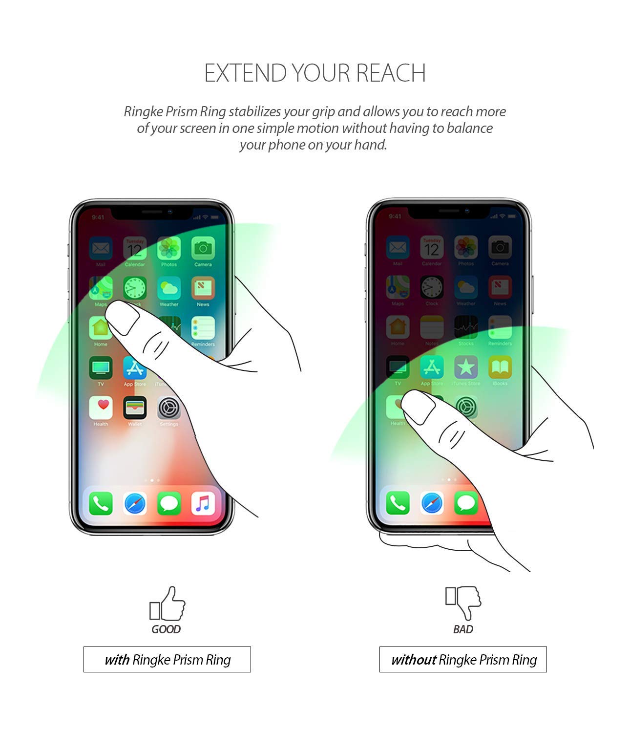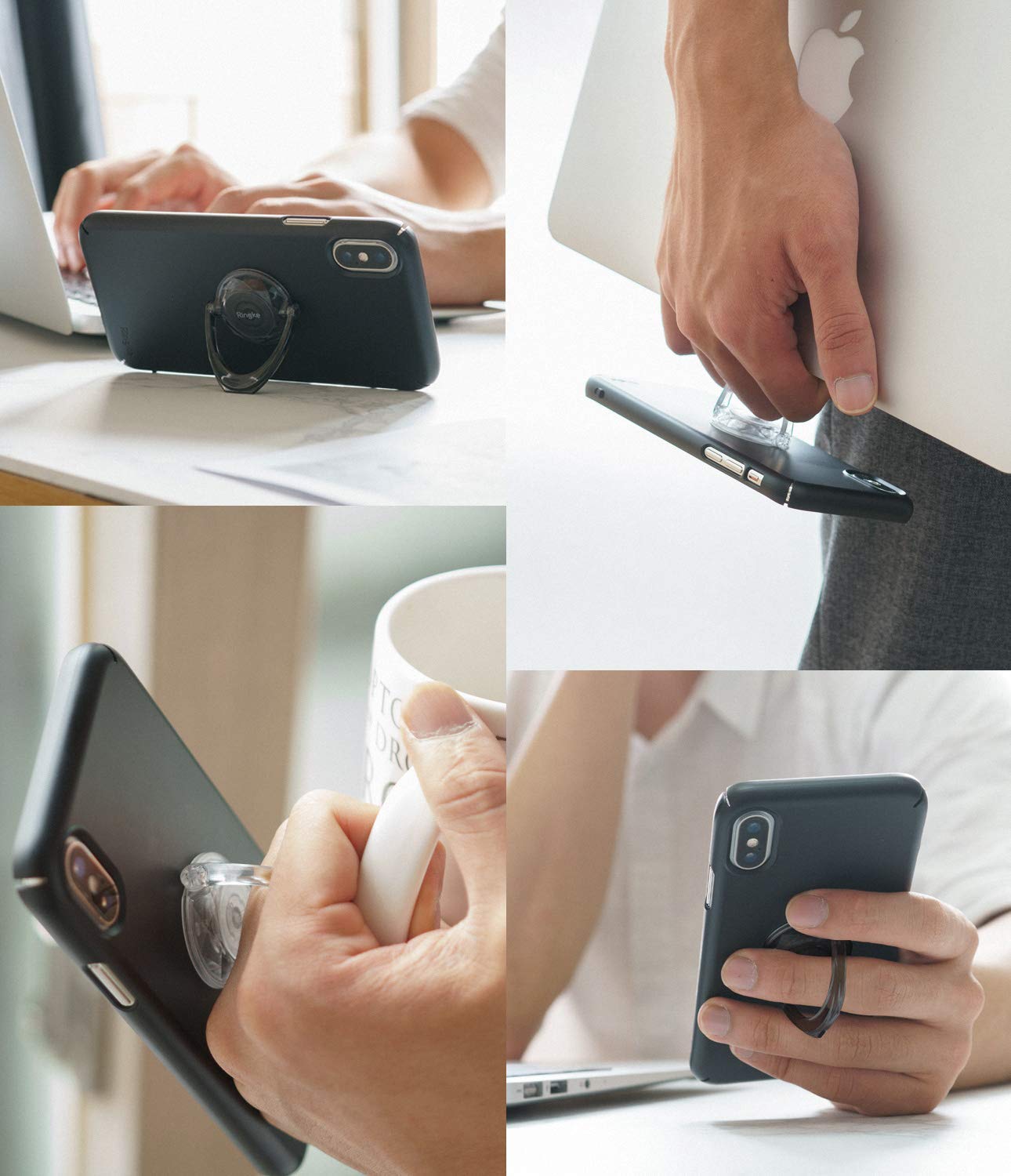 - Easy Use - Attachable and innovative smartphone ring gives an ideal solution to improved drop-free grip and comfortable hold making your device easy to take with you anywhere.Simply adhere the Ringke Prism Ring on the flat surface of your device or your mobile case.
