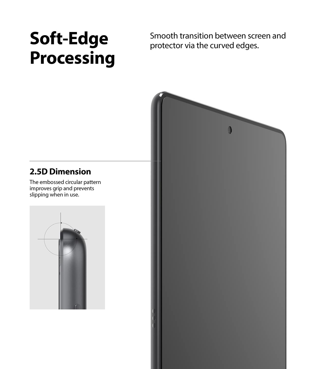 - 2.5-dimensional edge - Sleek curvature aligns screen protector surface with device screen.