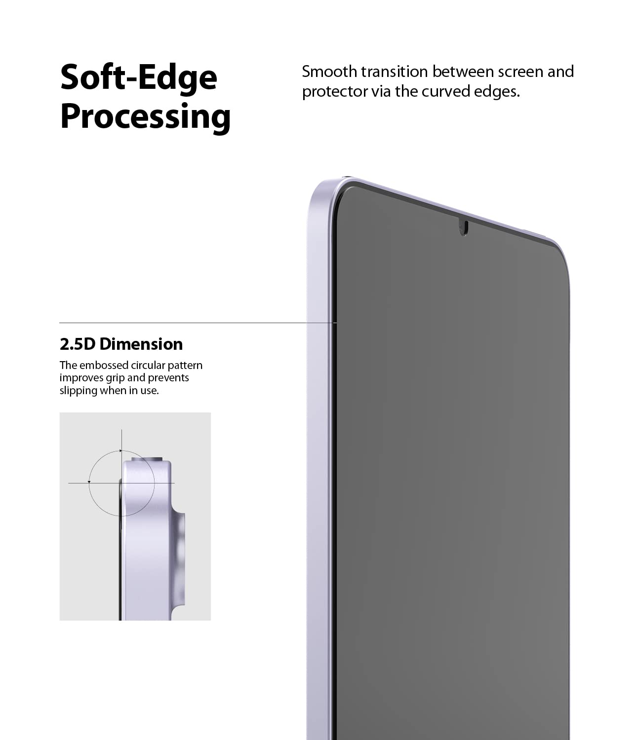 - 2.5-dimensional edge - Sleek curvature aligns screen protector surface with device screen.