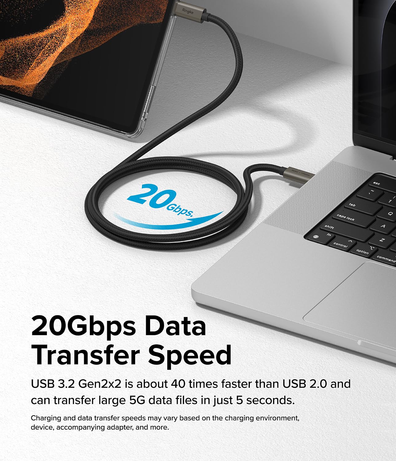 Ringke USB 3.2 Gen 2x2 USB-C Compatible with Type-C Data Transfer and Fast Charging Cable - 2m (Black)