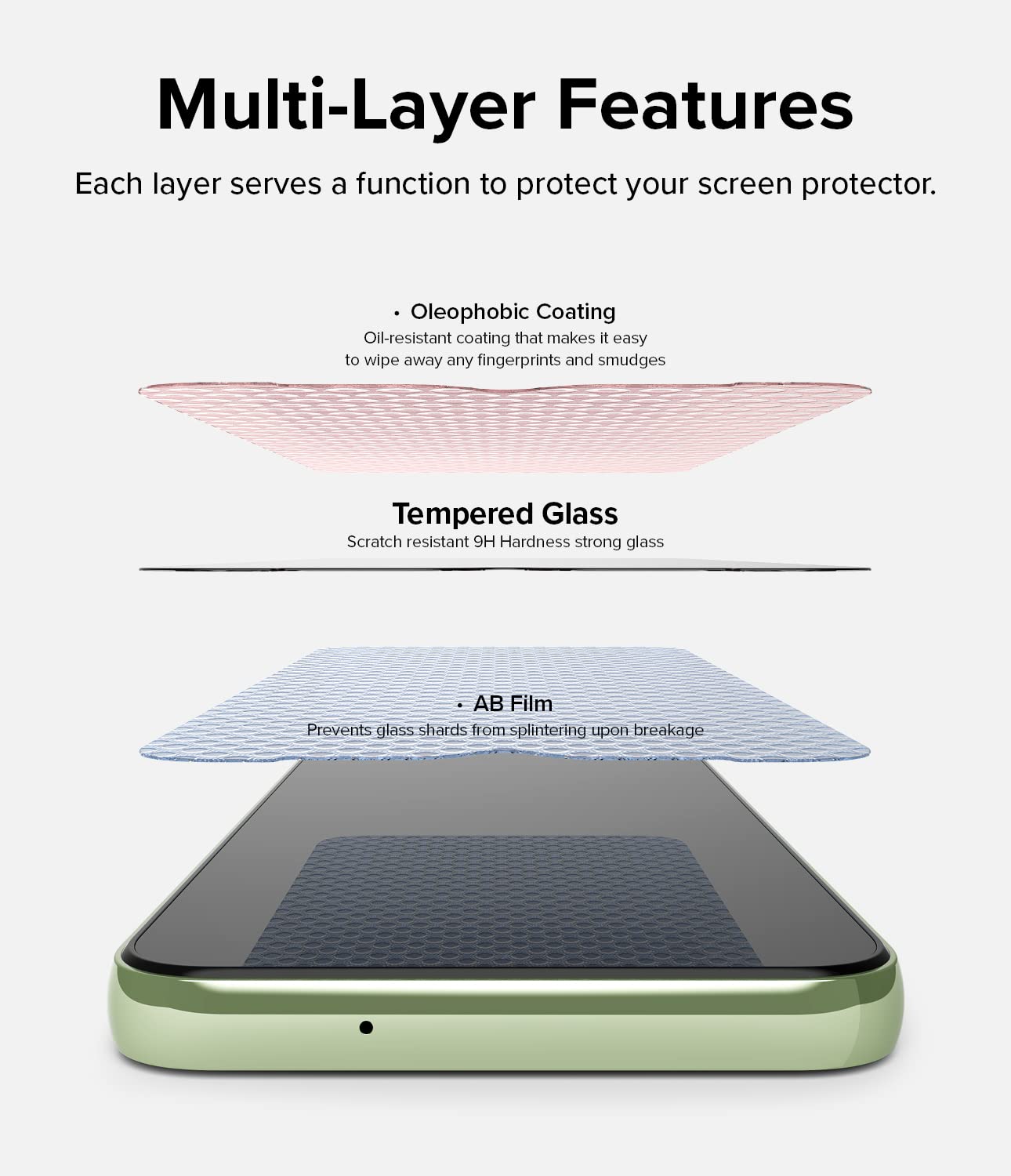 - 2.5-dimensional edge - Sleek curvature aligns screen protector surface with device screen