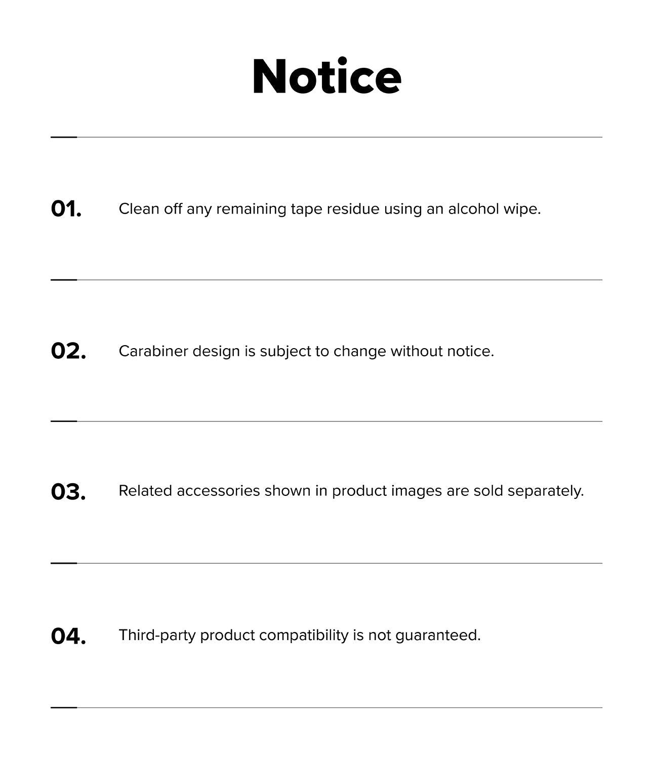 If the product is not in the sellable condition, Ringke will not be liable to replace the product.