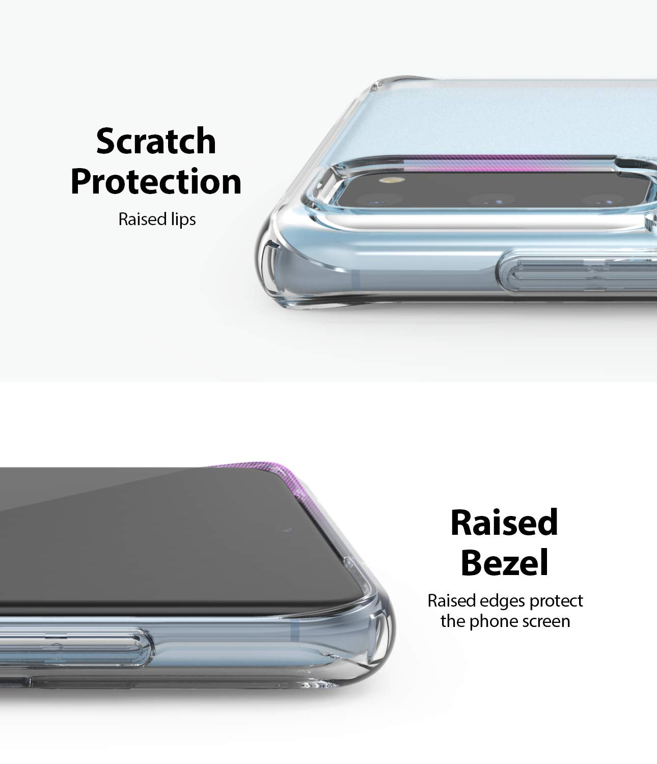 This lightweight case secures the phone against scratches and debris from daily usage. Keep your device light and handy wherever you go! The Fusion protects the Galaxy S20 front-facing camera and guards the rear cameras with an encompassing raised bezel.