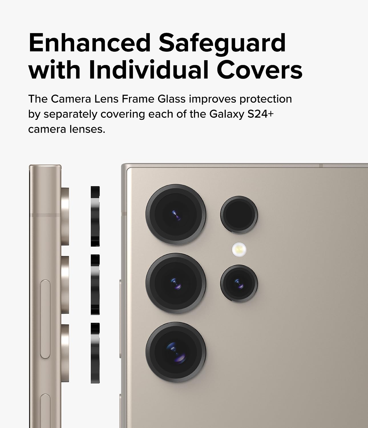 - Tempered Glass protectors to individually cover each rear camera lens on the Samsung Galaxy S24 Ultra