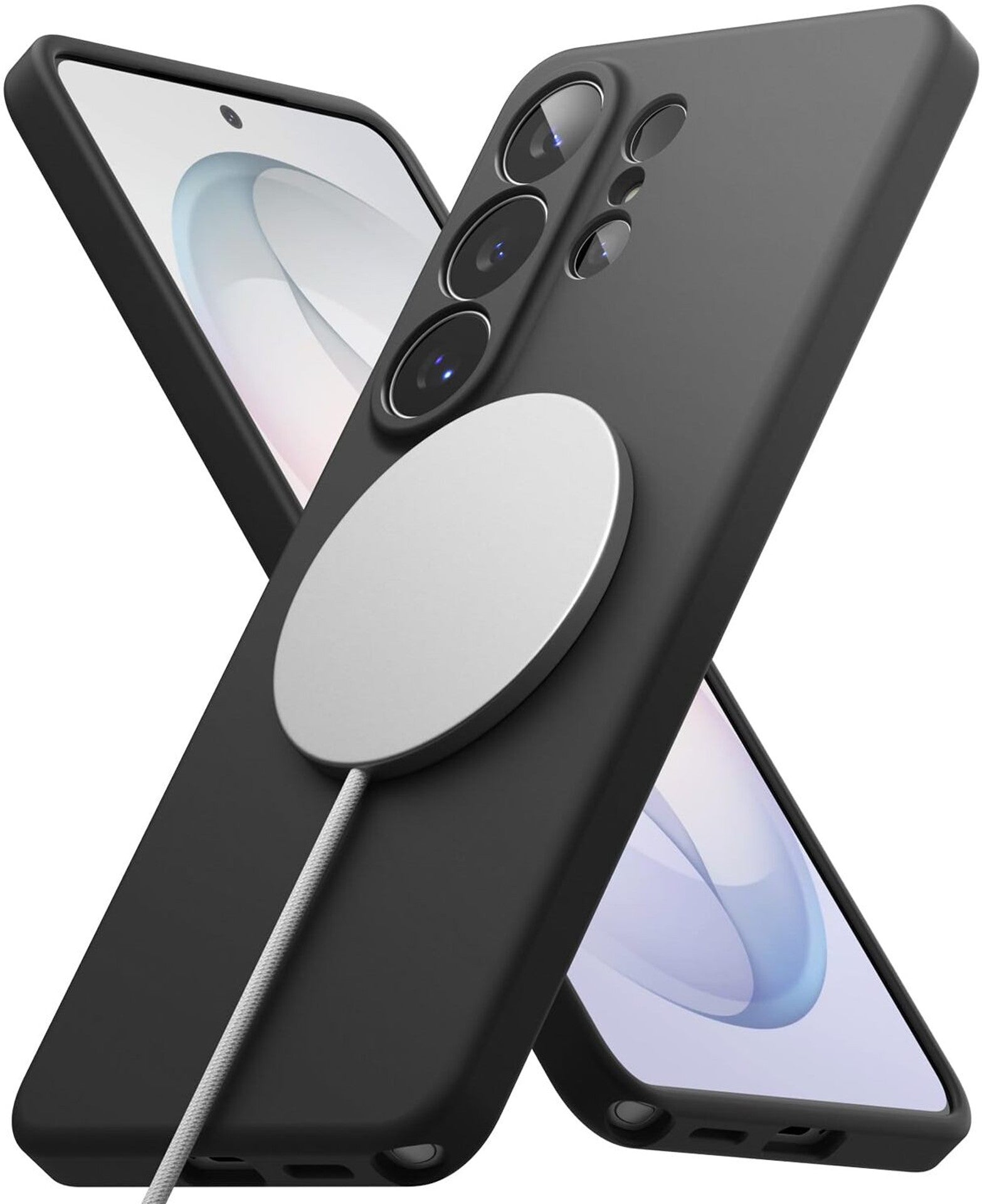 - Soft liquid silicone case with a built-in magnetic ring for the Samsung Galaxy S25 Ultra.