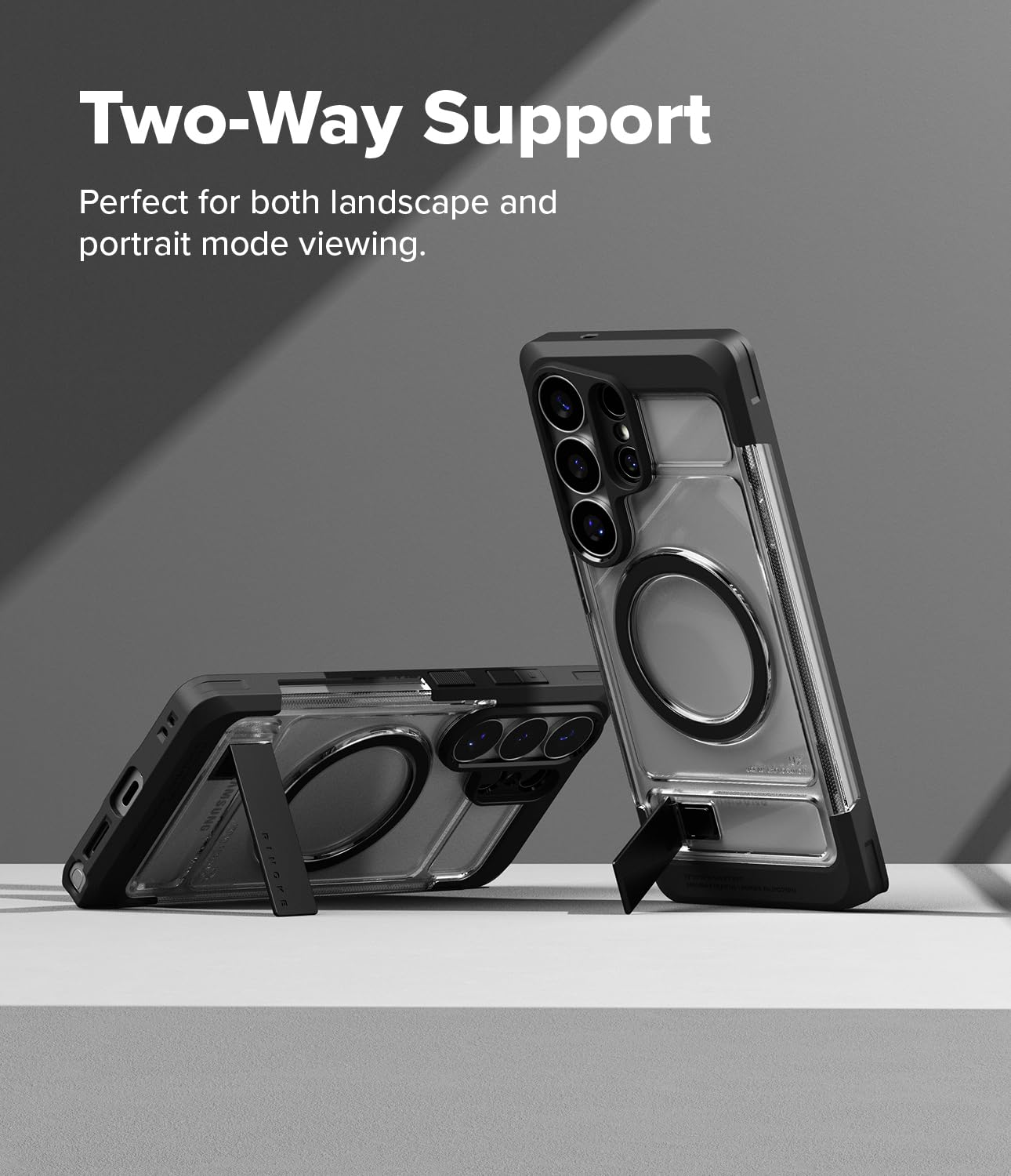 - Two-way kickstand supports landscape and portrait mode