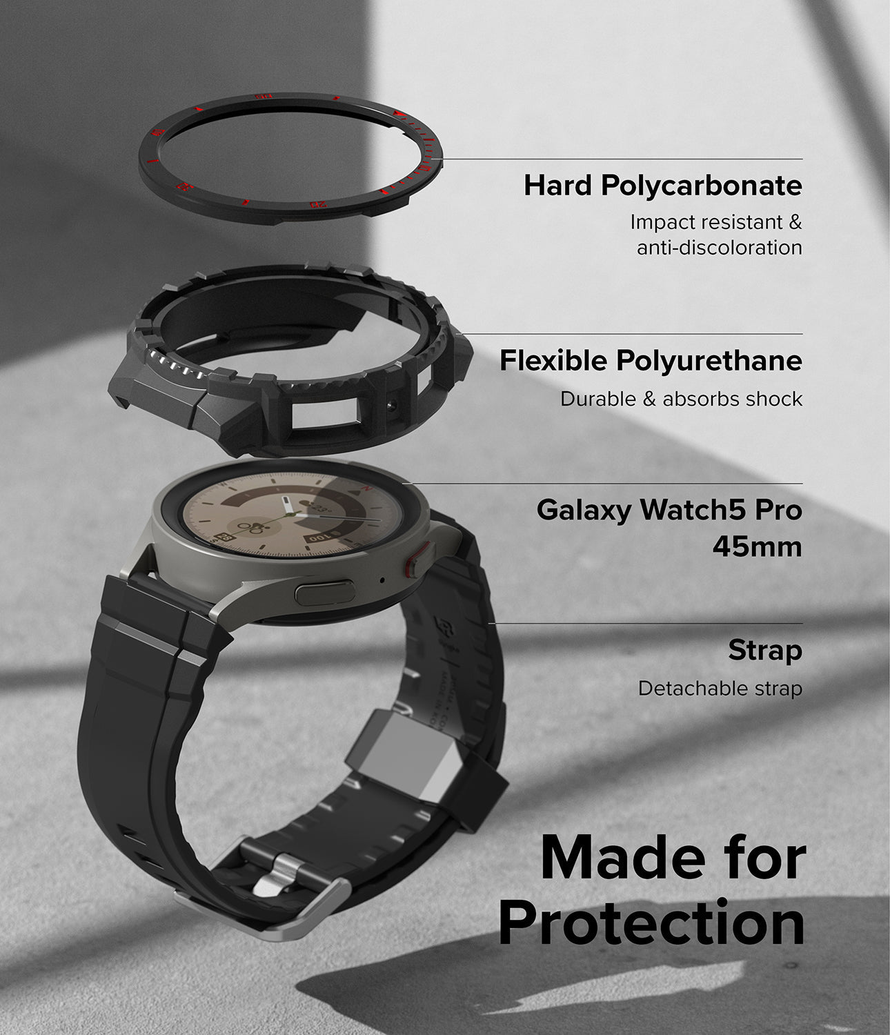 Samsung Galaxy Watch 5 Pro 45mm Strap with Case Fusion-X Guard - Black (Red Index)