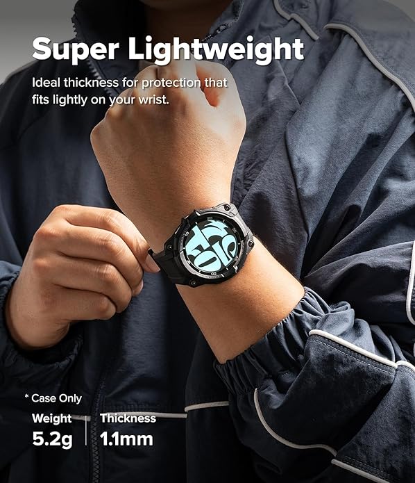 The case gives off a strong, heavy-duty vibe, but it sits comfortably and is lightweight on your wrist with a weight of only 5.2 grams.