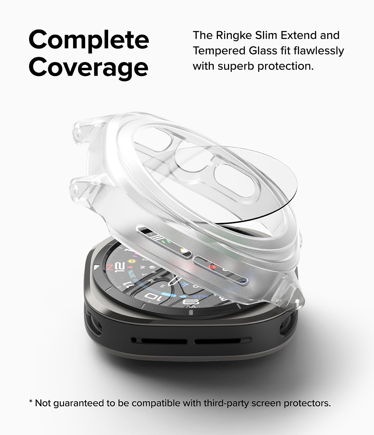 Samsung Galaxy Watch Ultra 47mm Slim Extend Case With Screen Protector Tempered Glass - Alpine Clear