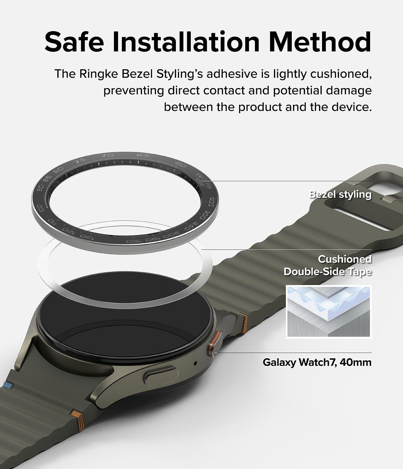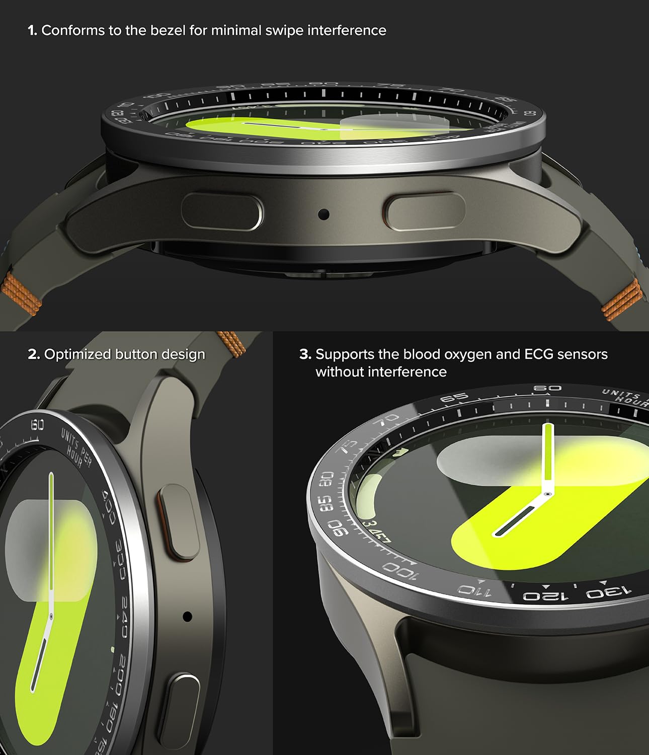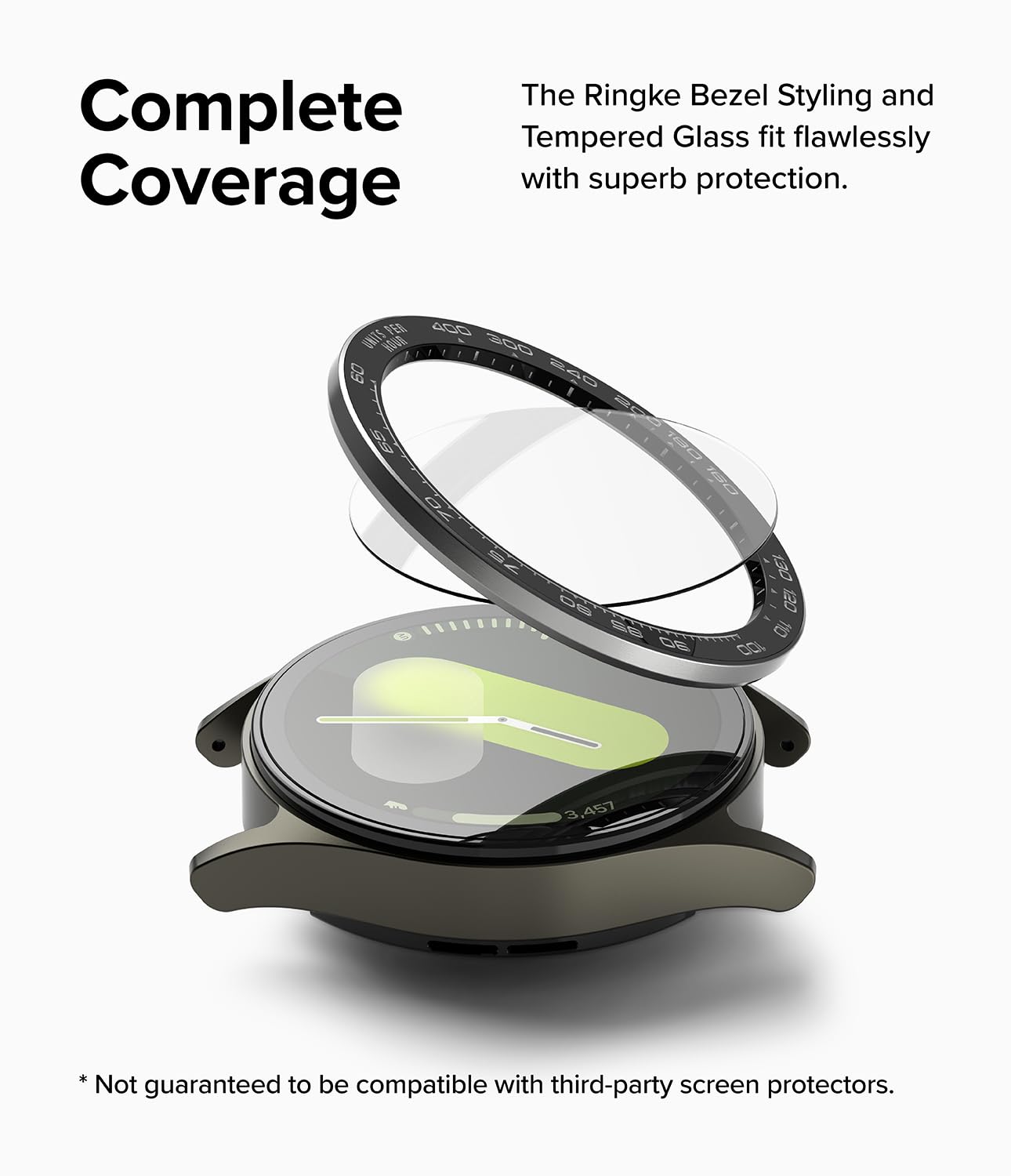 Samsung Galaxy Watch 7 40mm Bezel Styling With Screen Protector Tempered Glass - Black (40-98)