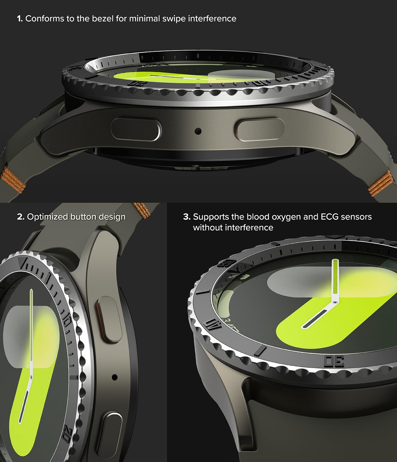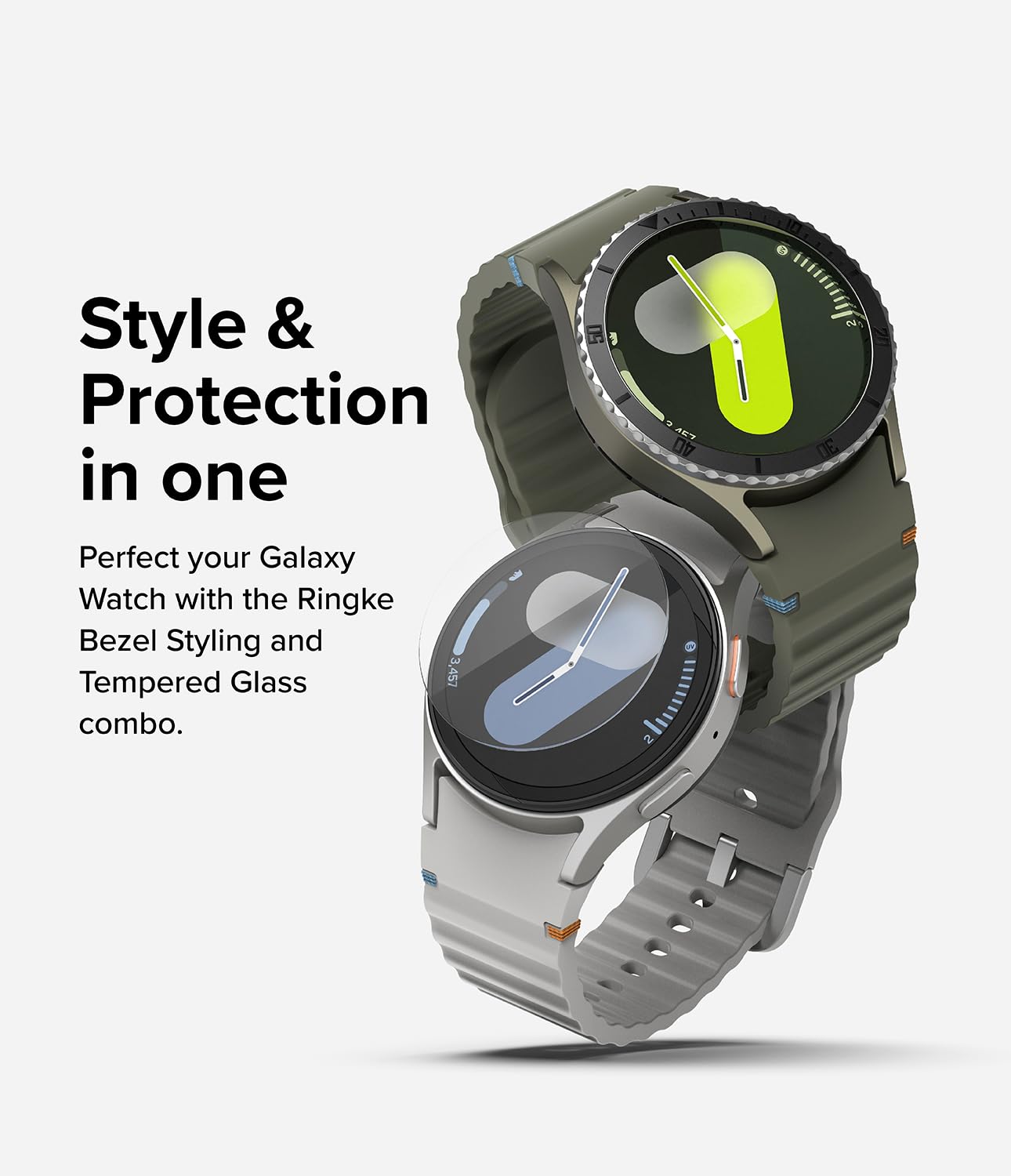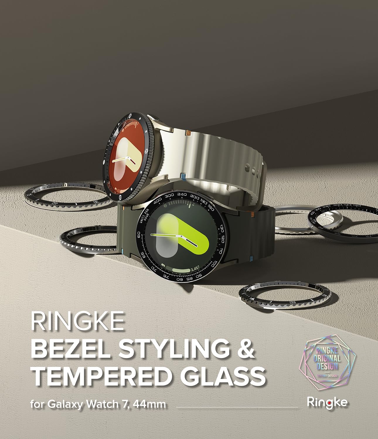 Samsung Galaxy Watch 7 44mm Bezel Styling With Screen Protector Tempered Glass - Black (44-96)