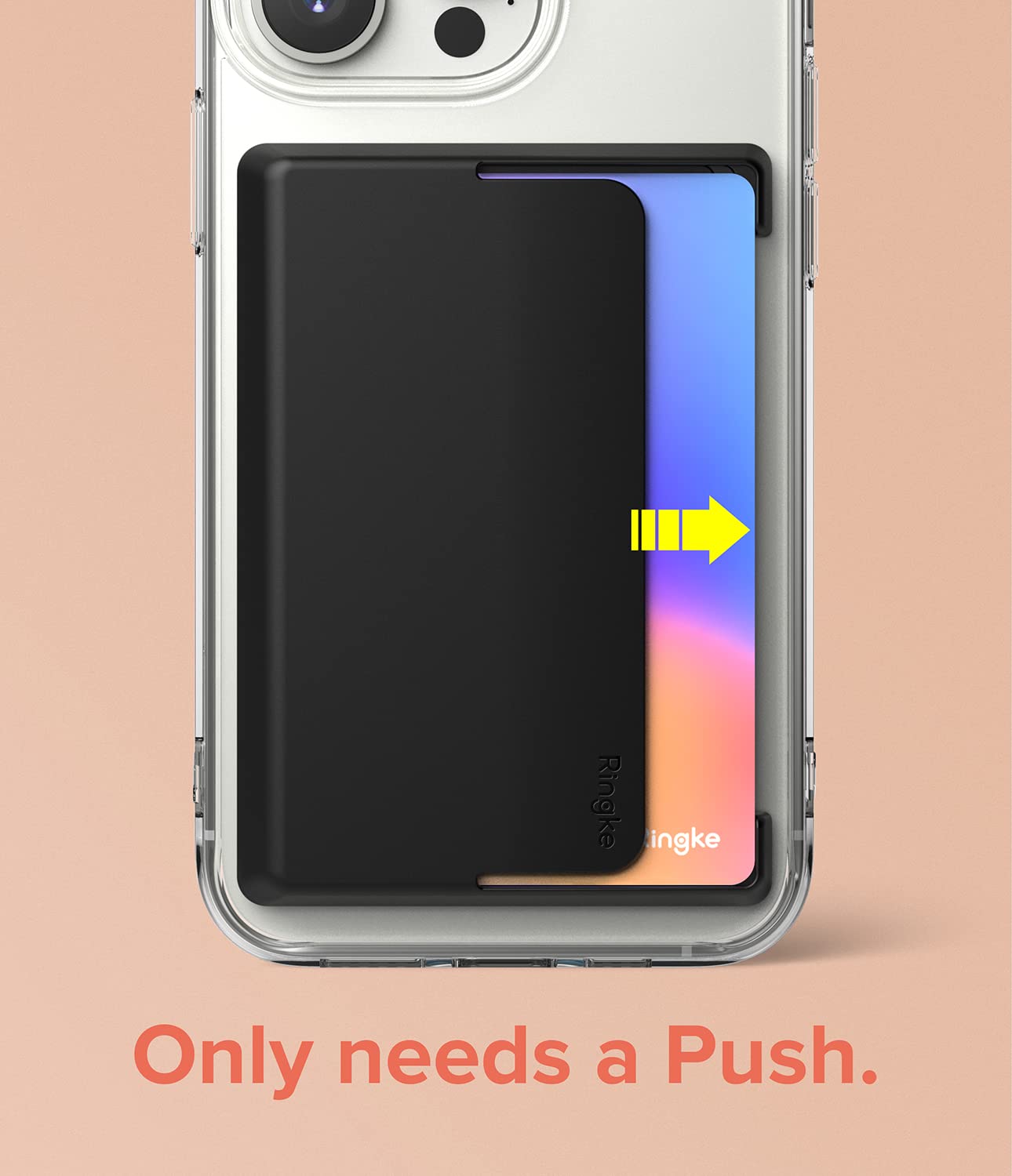 - Slim, lightweight cardholder for smartphones with a horizontal opening to hold up to 3 cards at a time