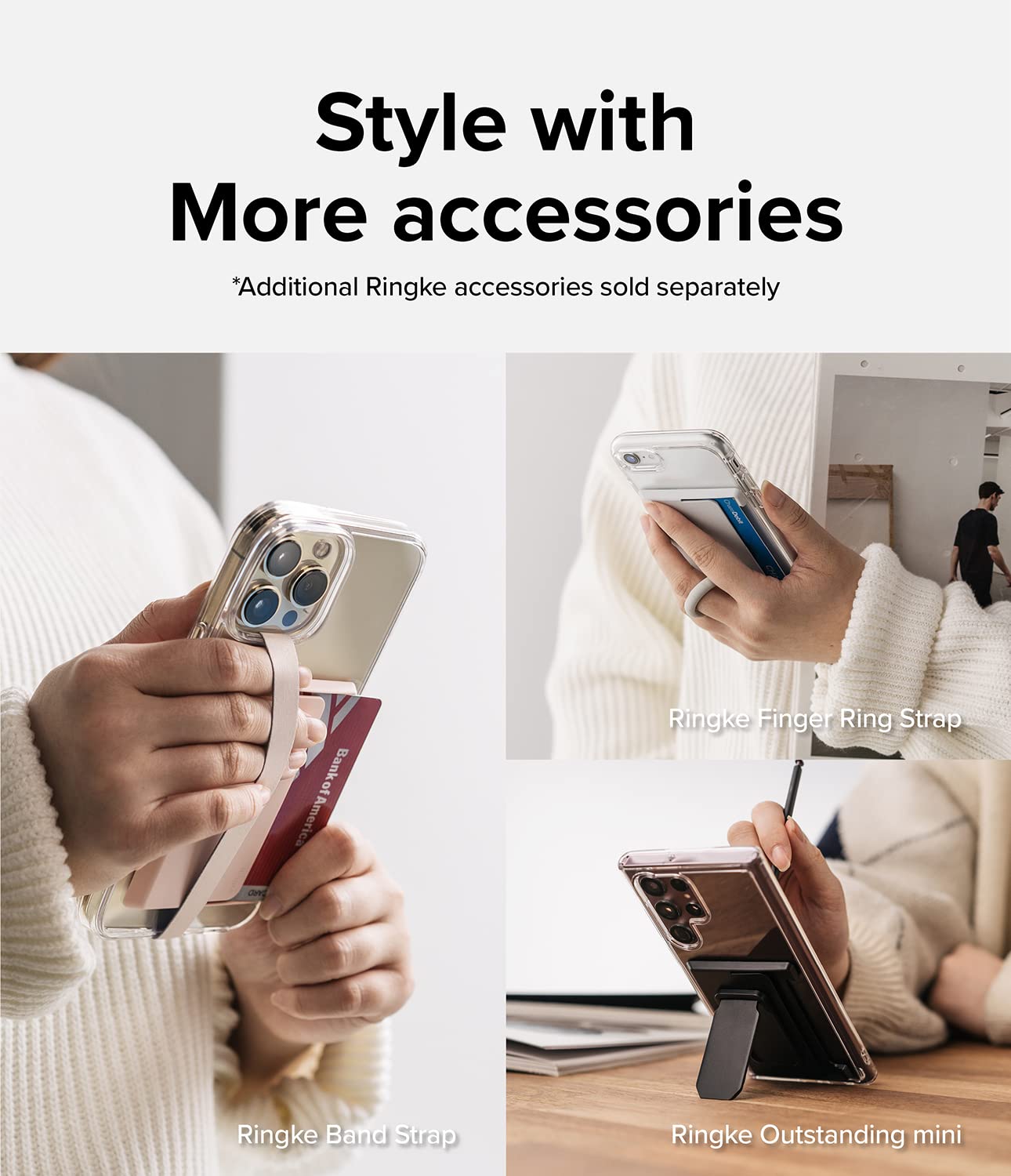 - Slim, lightweight cardholder for smartphones with a horizontal opening to hold up to 3 cards at a time