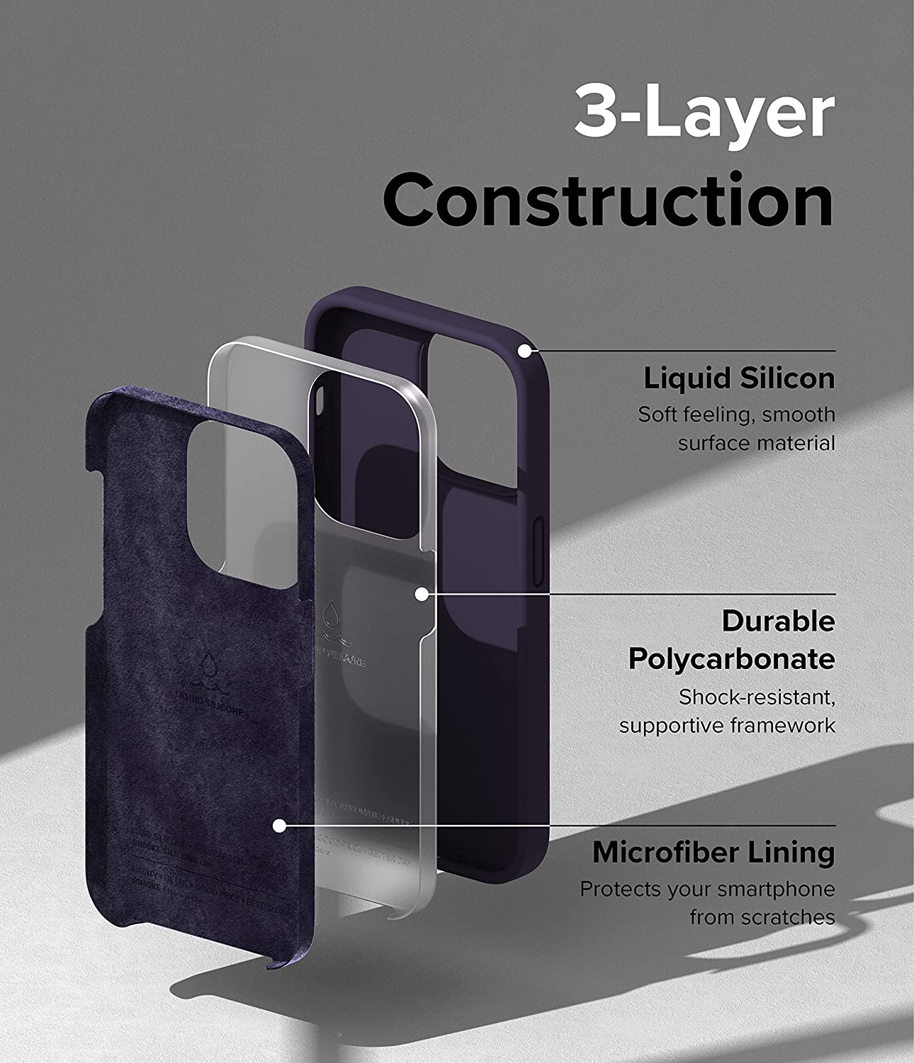 - Dynamic three-layer design of premium silicone exterior, durable polycarbonate frame, and velvety suede lining