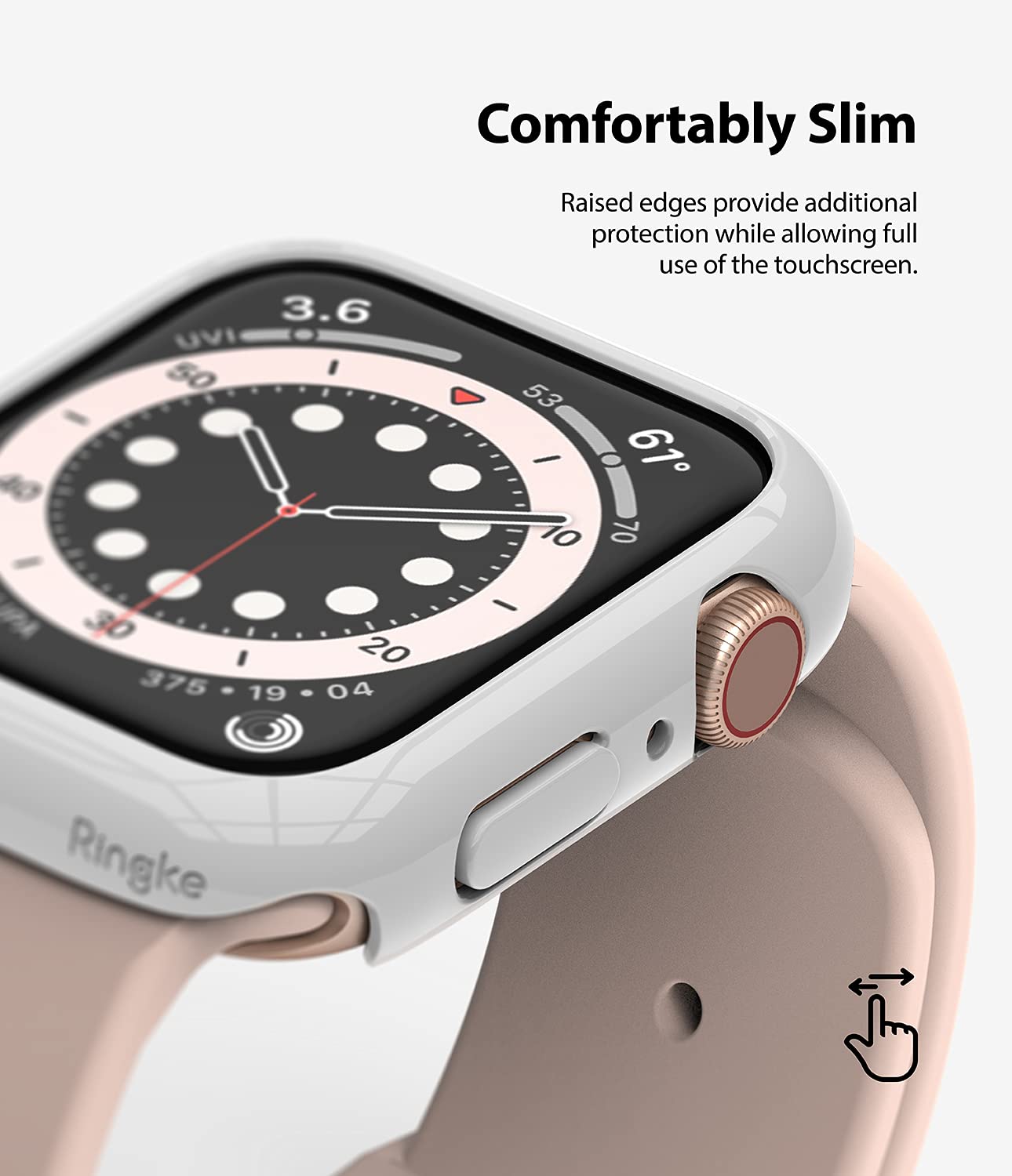 Insert the rotating crown into the bumper first, and let the other side slide onto the rest of the watch for fast and smooth installation. Ringke Slim for the Apple Watch is designed to protect your smartwatch while keeping it running at 100% capacity. Mix-and-match your style by incorporating matching watch bands.