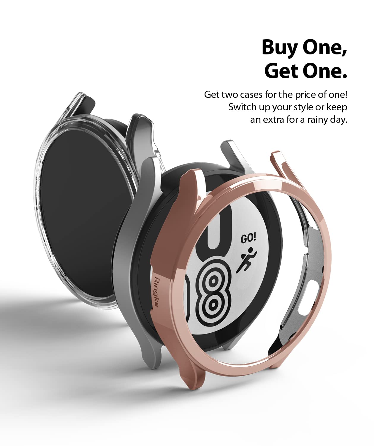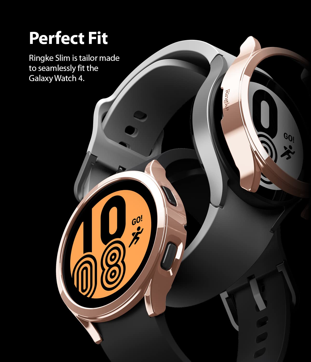 Slim Case Compatible with Galaxy Watch 4 44mm - Clear & Chrome Rose Gold (2pack)