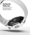 Insert the rotating crown into the bumper first, and let the other side slide onto the rest of the watch for fast and smooth installation. Ringke Slim for the Galaxy Watch is designed to protect your smartwatch while keeping it running at 100% capacity. Mix-and-match your style by incorporating matching watch bands.