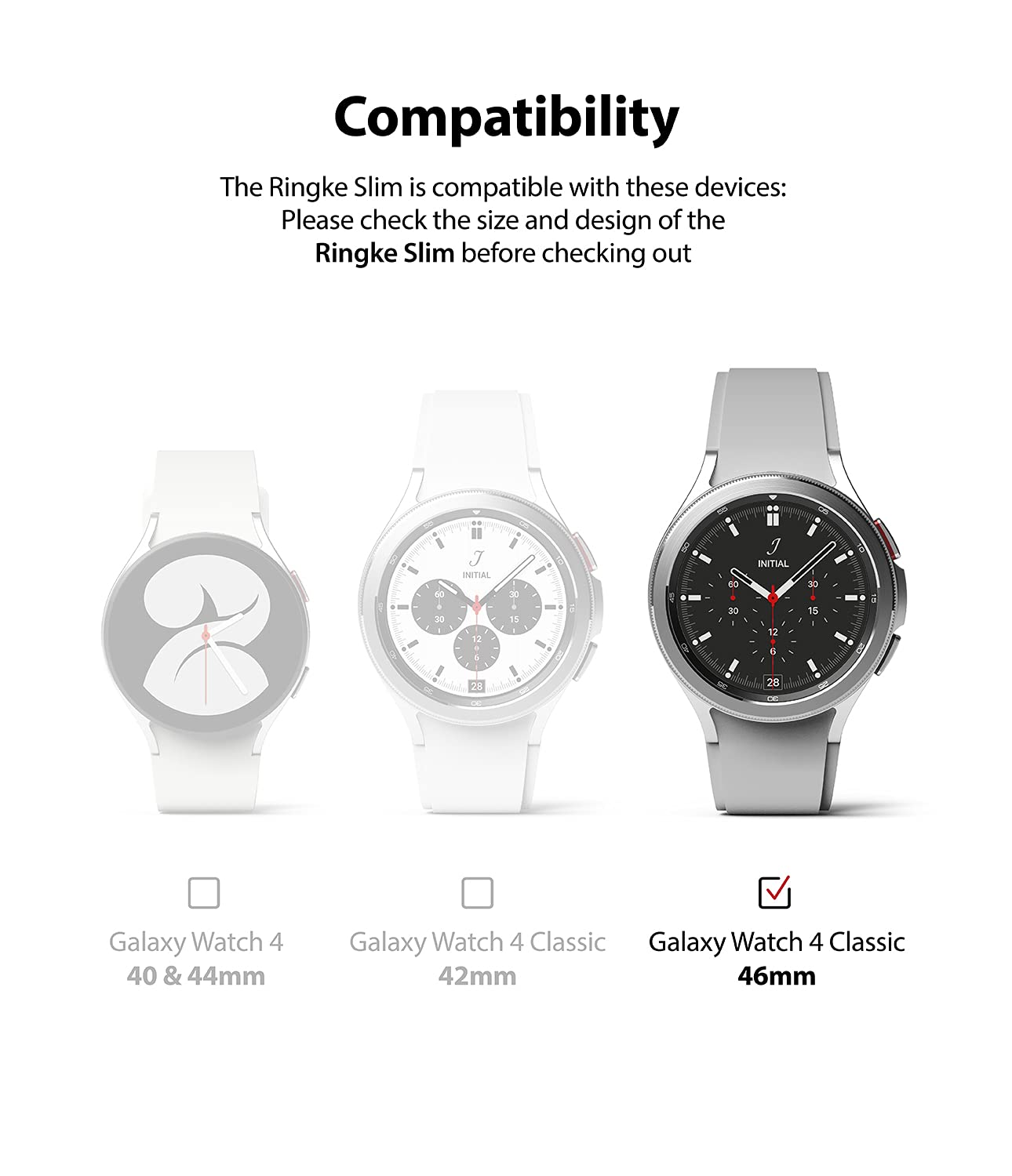 Insert the rotating crown into the bumper first, and let the other side slide onto the rest of the watch for fast and smooth installation. Ringke Slim for the Galaxy Watch is designed to protect your smartwatch while keeping it running at 100% capacity. Mix-and-match your style by incorporating matching watch bands.