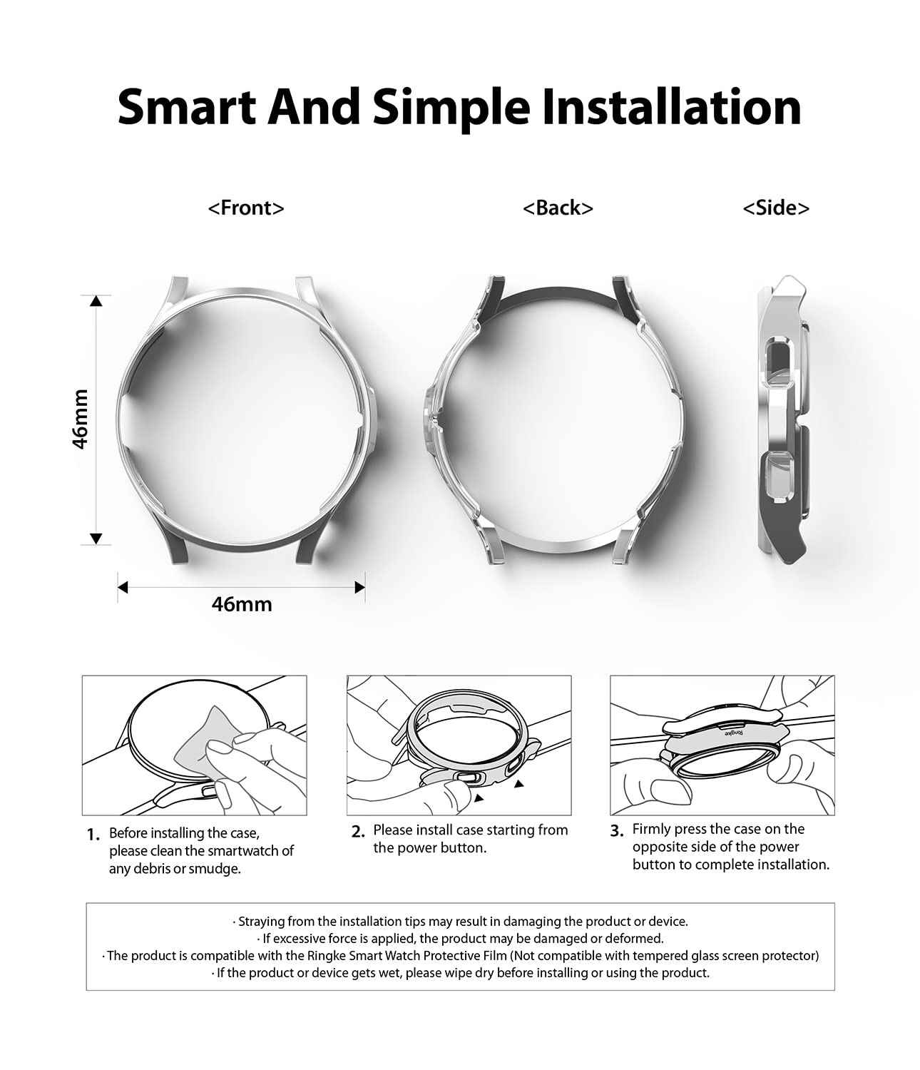 Insert the rotating crown into the bumper first, and let the other side slide onto the rest of the watch for fast and smooth installation. Ringke Slim for the Galaxy Watch is designed to protect your smartwatch while keeping it running at 100% capacity. Mix-and-match your style by incorporating matching watch bands.
