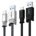 Braided Nylon Smart Fish Data Charging Cable USB C to USB A [1.2M] Black + Gray (2 Pack)