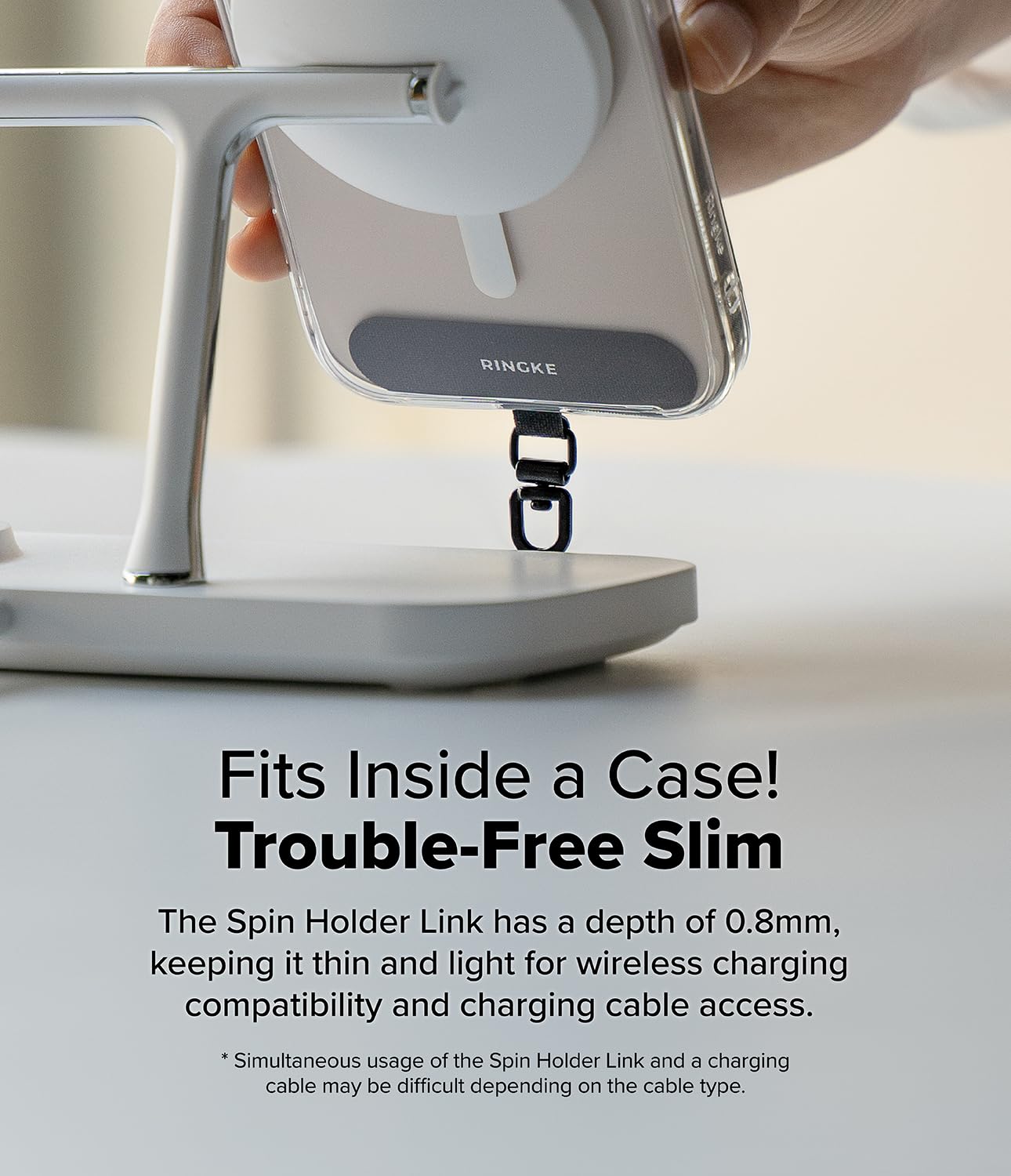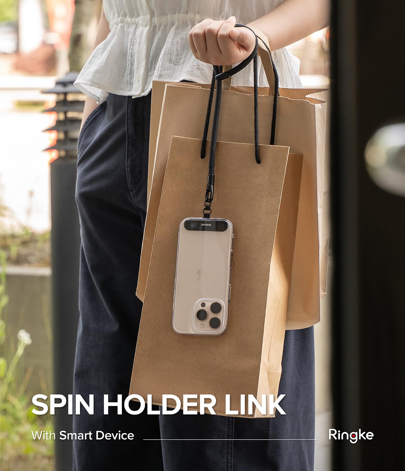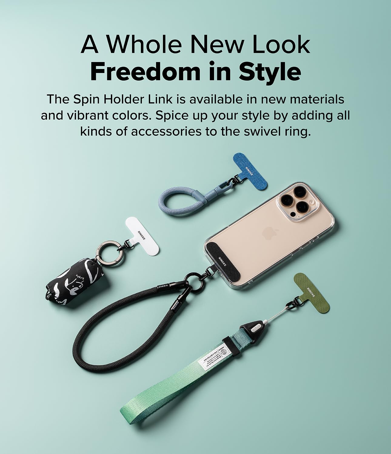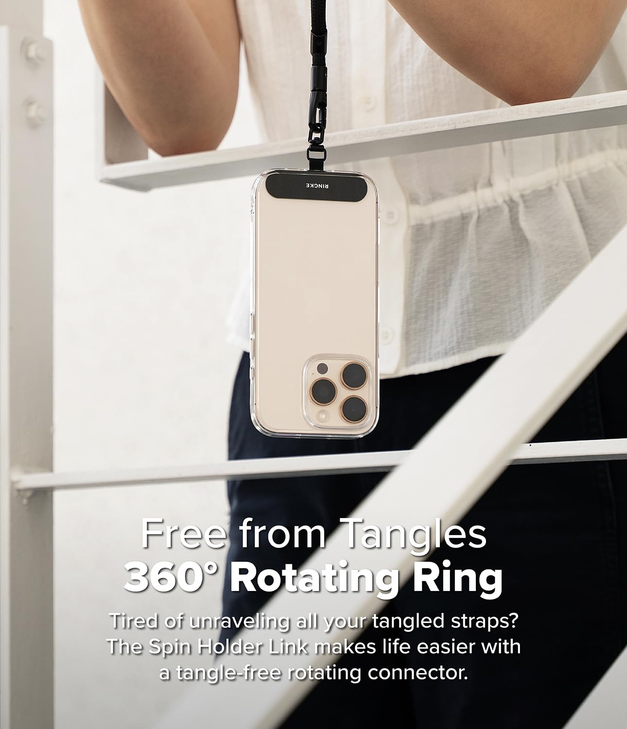 Spin Holder Link Lanyard Patch with 360° Rotatable Metal Ring - Calm Black