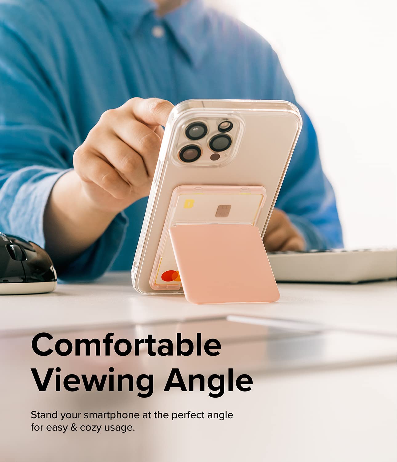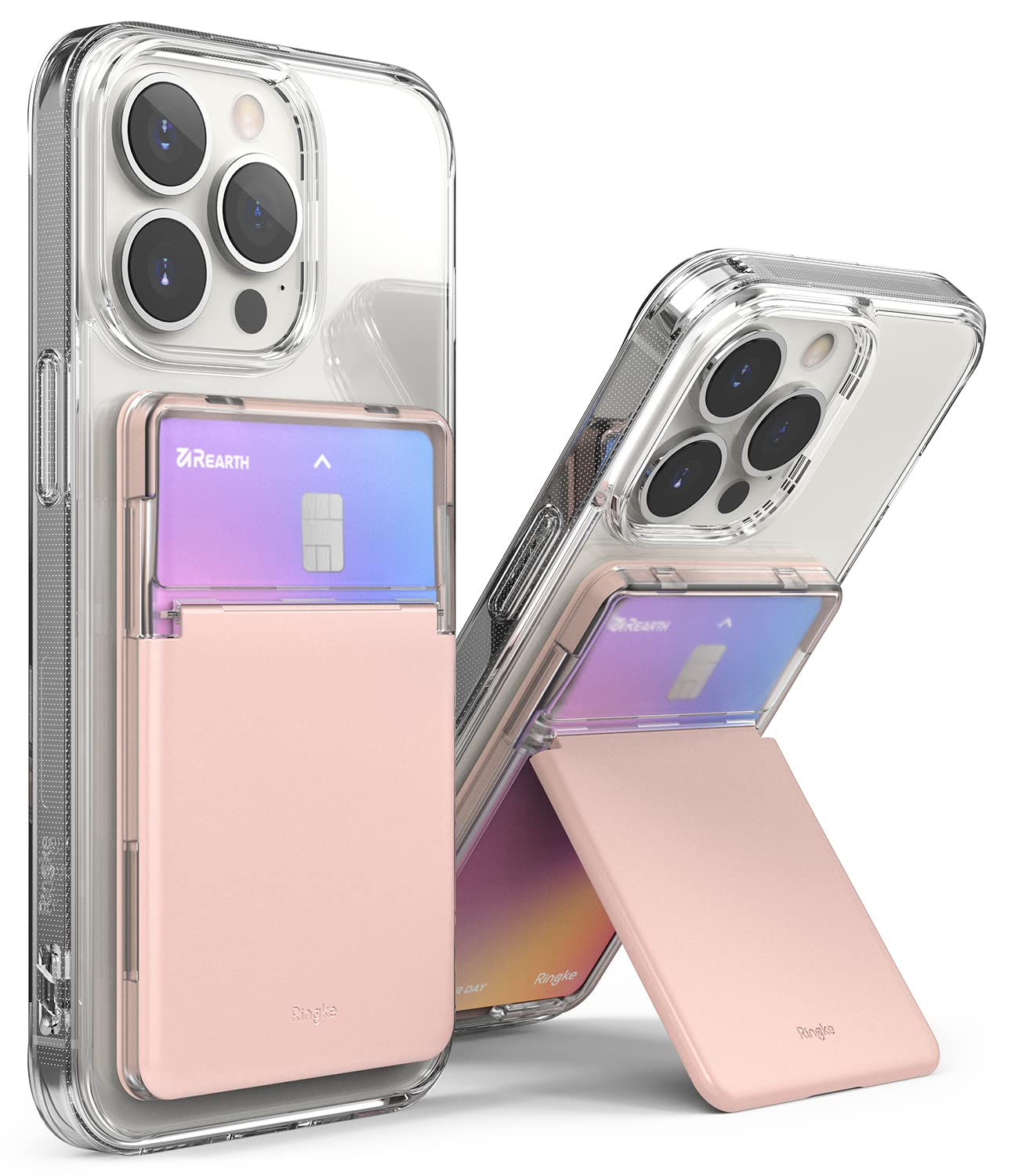 Stand Slot Card Holder - Clear & Peach Pink